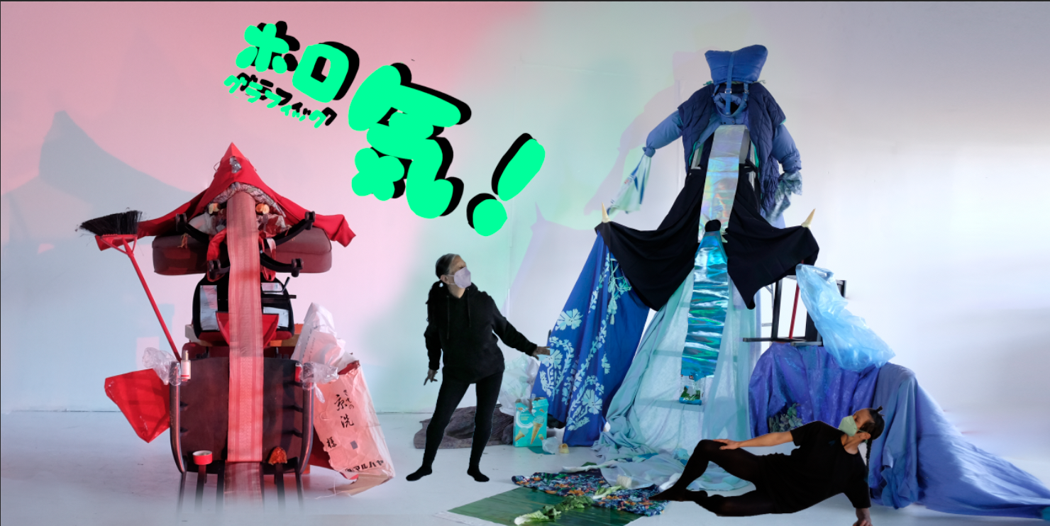 Holographic Ki is a Japanese-mess-mix musical made with my mother, with whom I watched most of the Rodgers and Hammerstein movie collection growing up. Together we picked “Getting to Know You” from The King and I as the theme song for this work. The project emerges from intergenerational sources of laughter, rhythm and aesthetics, haiku-like scenes and furniture monsters. It delves into nonlinear aging, the fluidity of the “host” position, and emergent icons created from the mundane as conjurers of real and imaginary ancestors. These icons appear monster-like (a monster is understood as being “of multiple origins”) and puppet-like in their potential. We dance for them, they dance for us. Through a relational agency between human and non-human, we look for an abcanny sweet spot: a flatness, a horrific and beatific suspension.